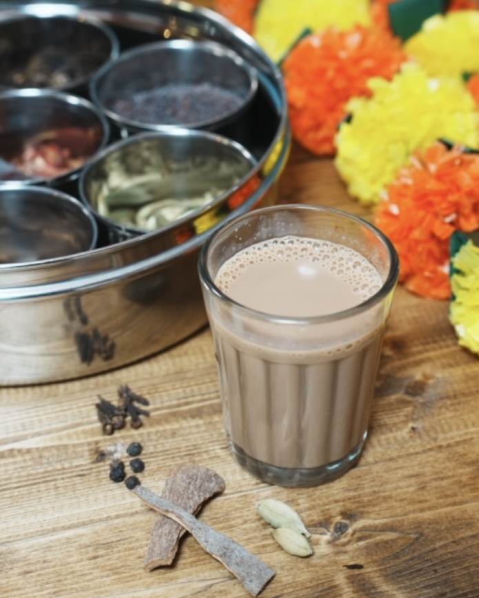 メインのメニュー:スパイスカレー、チャイ、スパイスセット
